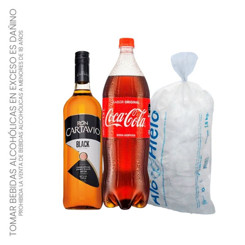 Combo Ron CARTAVIO Black Botella + Gaseosa COCA COLA Botella 1.5L + Hielo ALO 1.5kg