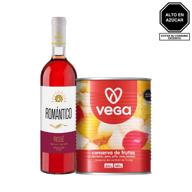 Combo Vino ROMÁNTICO Rosé Botella 750 ml + Cocktail de Frutas VEGA 820 g