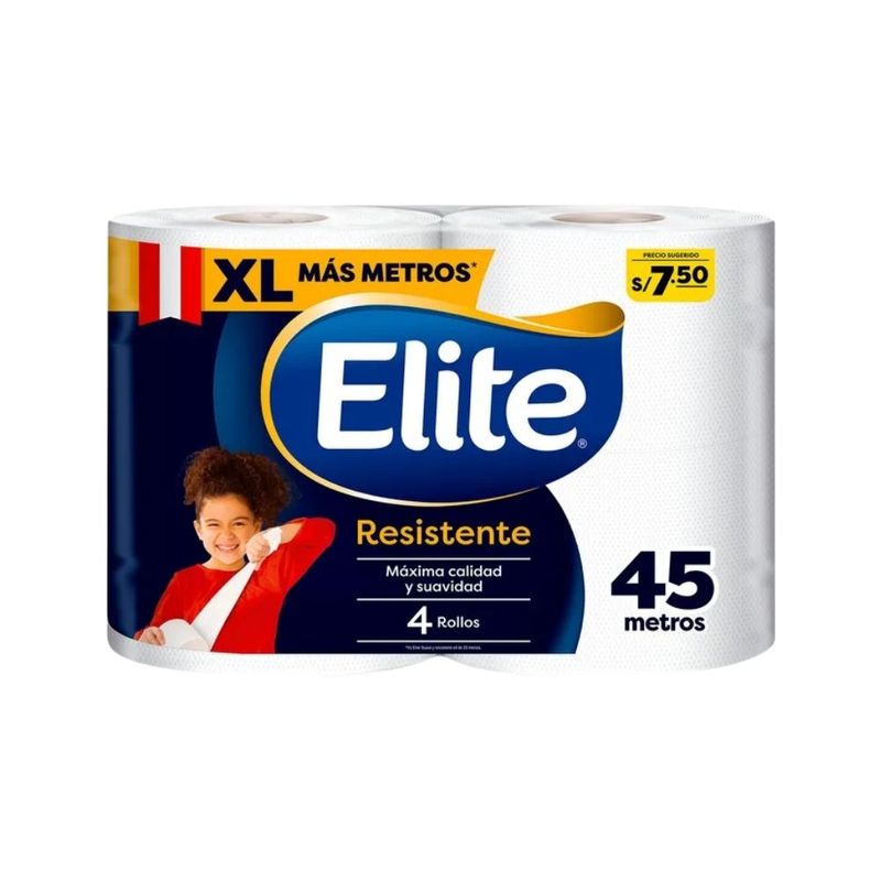 Papel Higiénico ELITE XL Resistente 45Mts Paquete 4rollos