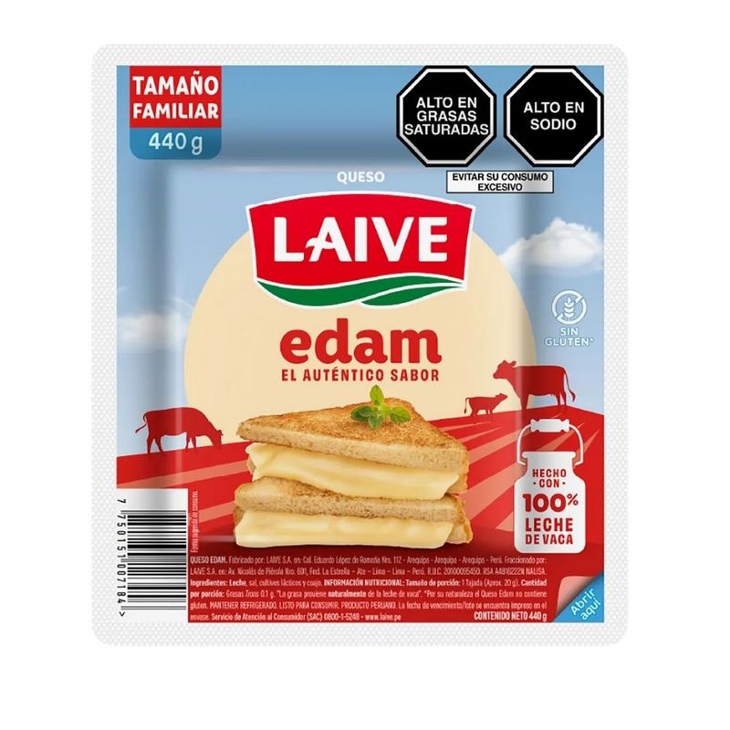 Fiambres, Lácteos, Huevos y CongeladosQuesosQueso Edam LAIVE Tajada Empaque 440ml