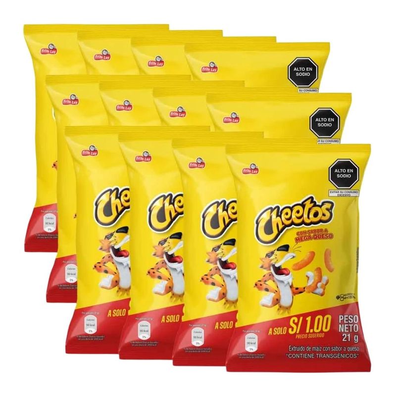 Bebidas y SnacksSnacksSnacks CHEETOS Mega Queso Bolsas 21g Tira 12u